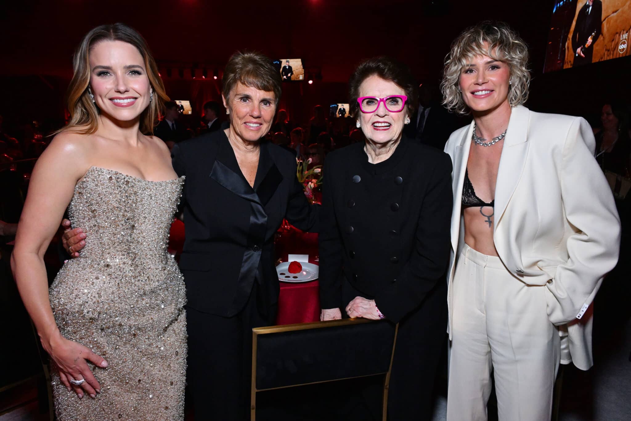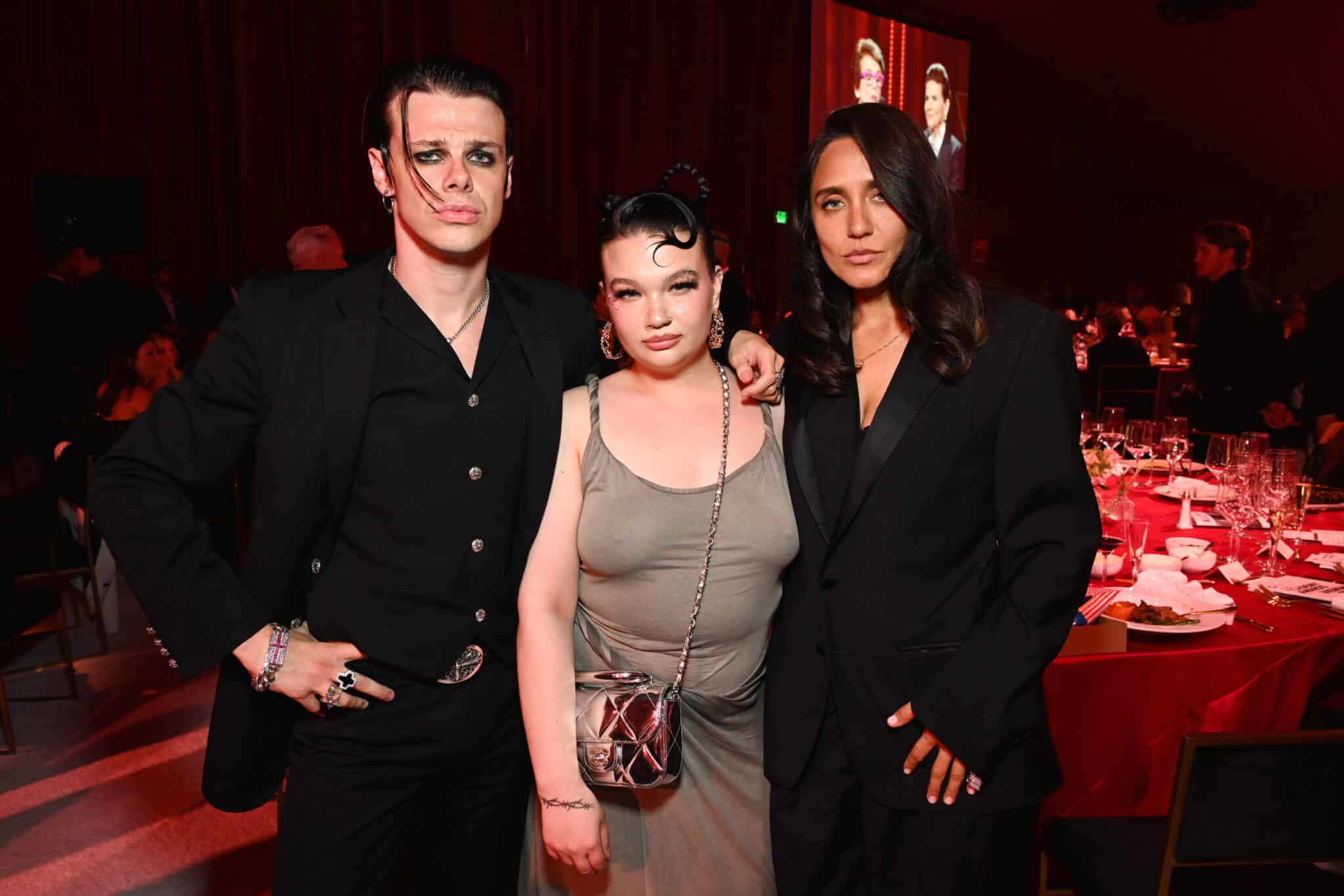Additional attendees included: Adam Lambert, Alysa Liu, Andrew Watt, Ashlyn Harris, Bernie Taupin, Becky G, Betsey Johnson, Billie Jean King, Brandi Carlile, Callum Turner, Camille Razat, Charlotte Tilbury, Chris Colfer, Chris Paul, Colton Haynes, Damiano David, David Geffen, Diego Boneta, Dove Cameron, Dua Lipa, Eric McCormack, Fran Drescher, Haley Kiyoko, Katy O’Brien, Ilana Kloss, Jake Wesley Rogers, Jane Seymour, Jason Ritter, Jesse Jo Stark, JC Chasez, John Magaro, Julien Baker, Kate Beckinsale, Keke Palmer, Lana Condor, Laverne Cox, Lisa Ann Walter, Madison Chock, Maura Higgins, Melissa McCarthy, Olivia Palermo, Orville Peck, Patricia Arquette, Renata Notni, Robbie Graham Kuntz, RuPaul, Sonia Mena, Sophia Bush, Stephanie Beatriz, Spencer House, Tiffany Haddish, Tina Knowles, Tove Lo, Tristan Schukraft, Donatella Versace, Yungblud, Zoe Saldaña, among others.