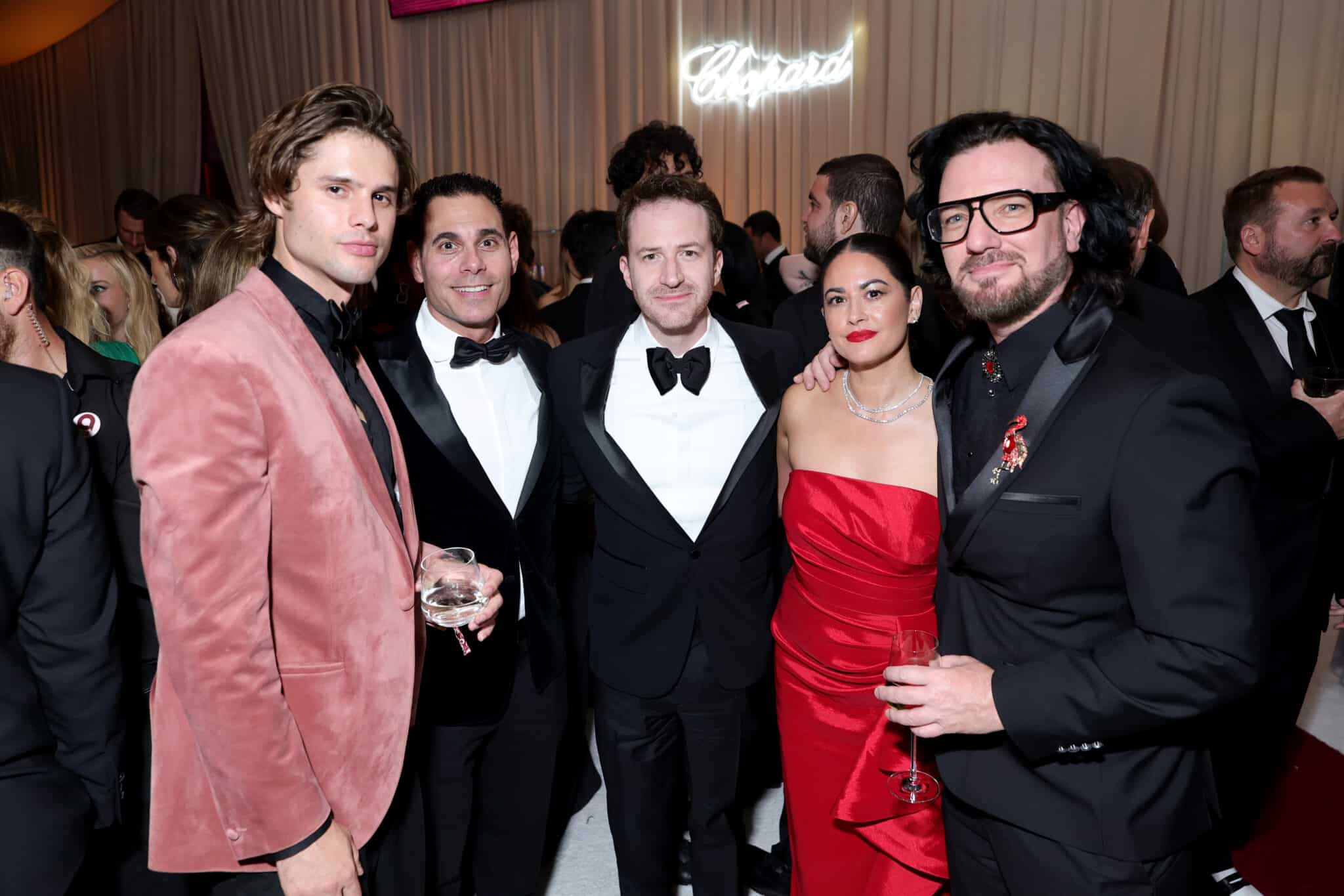 Presenting sponsors of the event included A+E Global Media, Chopard, Gilead Sciences, Robert and Dana Kraft, Bob and Tamar Manoukian and MISTR, which supported the Academy Awards Viewing Party After Party. Supporting co-sponsors include Iris and Michael Smith, plus centennial champagne toast and official airline partner American Airlines, spirits partner Tequila Don Julio, and the City of West Hollywood.